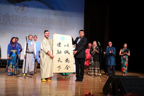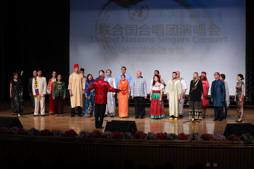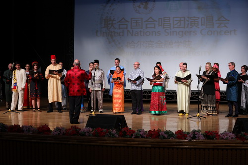 此次联合国合唱团应哈尔滨国际会展体育中心邀请,在第25届中国国际广告节公益广告黄河奖颁奖晚会上进行了压轴演出。联合国合唱团(全称“联合国工作人员文娱委员会合唱团”)成立于 1947年,七十年来,作为“和平大使”在世界各地演出,传递和平声音,倡导和谐理念。现有成员近 60 人,主要由联合国在职和退休职员、各国常驻联合国代表团官员和相关国际组织、非政府组织驻纽约工作人员组成。成员来自世界各地 20 多个国家,包括中国、美国、英国、法国、俄罗斯五大安理会常任理事国,代表着不同区域、种族、语言和文化背景。这些外交官和国际公务员在繁忙工作之余,利用业余时间进行排练演出,用 50 多种语言演唱世界各地的民歌。