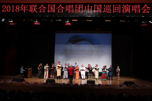 9月27日下午,在2018年国际和平日到来之际,联合国合唱团一行30人来到我院,与师生同台高歌,共享音乐盛会,表达了共同构建“人类命运共同体”的美好愿望。