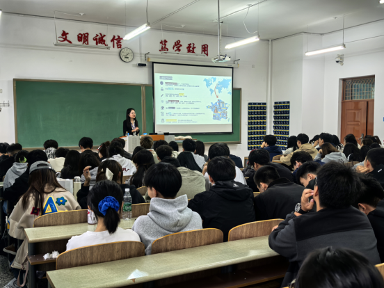 宣讲会现场座无虚席,同学们对赴法留学项目表现出浓厚兴趣。张老师详细介绍了学校的国际化特色,重点解读了双方合作的“3+1+1”本硕连读项目及“2+2”本科双学位项目。张老师强调,诺欧商学院的课程采用全英文授课,对本科专业背景没有限制,为不同专业背景的学生提供了多元化选择。